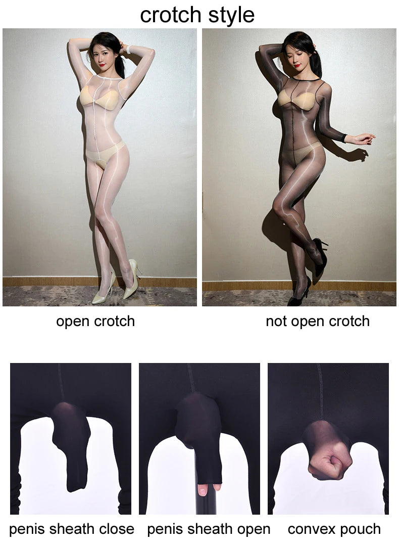 Combinaison "LustSkin" – Catsuit Ultra Brillant Ouvert à l’Entrejambe, Clubwear Unisexe en Nylon/Spandex