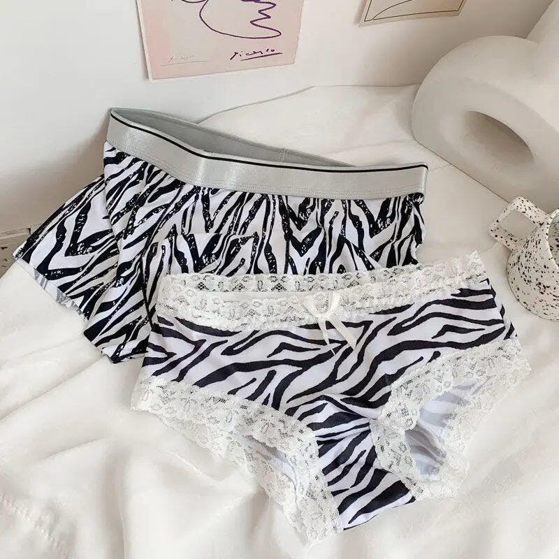 Ensemble sexy "Zebra Ice" – Sous-vêtements assortis pour couples en soie glacée