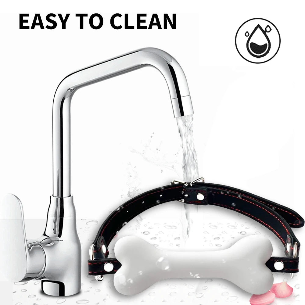 Inspiré de la forme ludique d’un os à mâcher, ce bâillon Dog Bone™ en silicone souple et cuir PU s’adresse aux adeptes du BDSM tout en garantissant un confort optimal. Idéal pour les jeux de rôle de type "pet play", il combine esthétique, fonctionnalité et sécurité.
